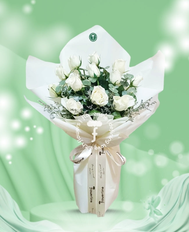 Indulge in the understated beauty of our Blake bouquet. Featuring a stunning assortment of white roses, it's the perfect choice for any occasion. With its simple yet unique design, it makes for a versatile and gender-neutral gift. Elevate your gifting game with Blake.