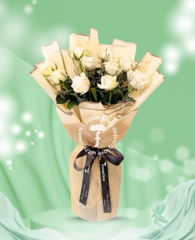 Show your love with Clara! This unique bouquet of white roses is a perfect mix of modern and classic design, perfect for that special someone. Clara is sure to make your loved one feel special and adored.