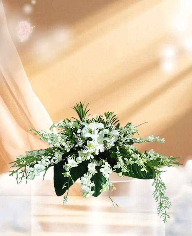 Express your sincerest condolences with this exquisite funeral flowers pot arrangement. Expertly crafted with the highest quality materials and attention to detail, this stunning flowers will be an elegant and tasteful tribute to the departed. Meticulous details and fine textures create a sophisticated and timeless representation of love and respect.