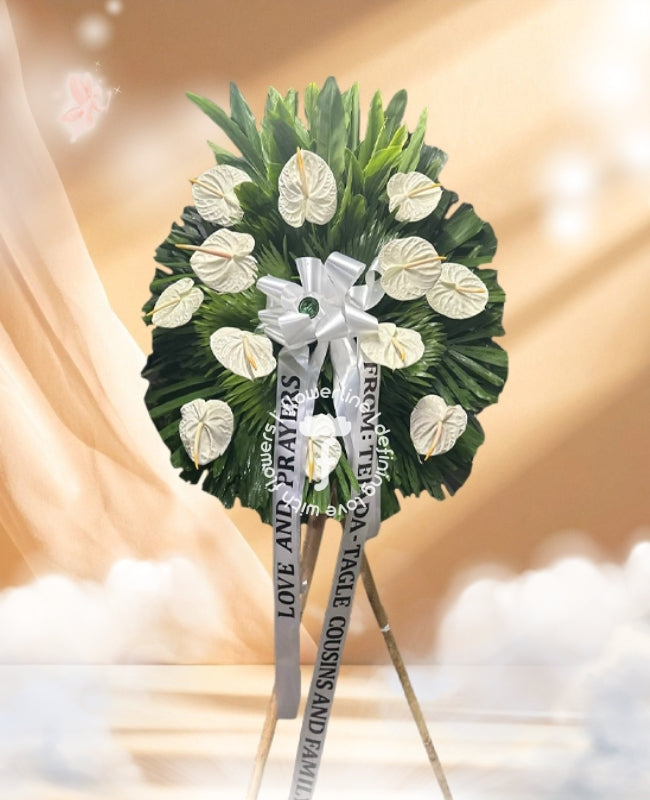 Express your sincerest condolences with this exquisite funeral flowers - one layer stand arrangement. Expertly crafted with the highest quality materials and attention to detail, this stunning flowers will be an elegant and tasteful tribute to the departed. Meticulous details and fine textures create a sophisticated and timeless representation of love and respect.