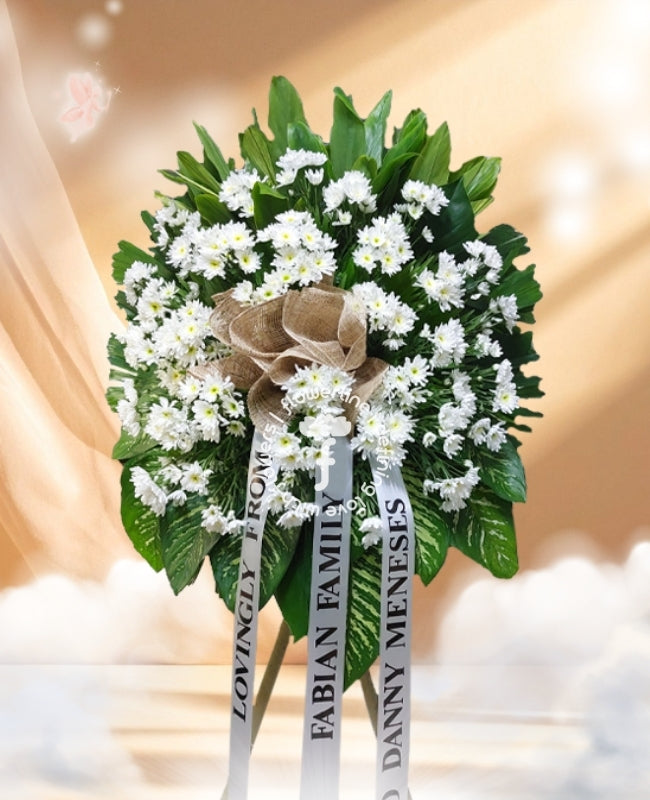 Express your sincerest condolences with this exquisite funeral flowers - one layer stand arrangement. Expertly crafted with the highest quality materials and attention to detail, this stunning flowers will be an elegant and tasteful tribute to the departed. Meticulous details and fine textures create a sophisticated and timeless representation of love and respect.