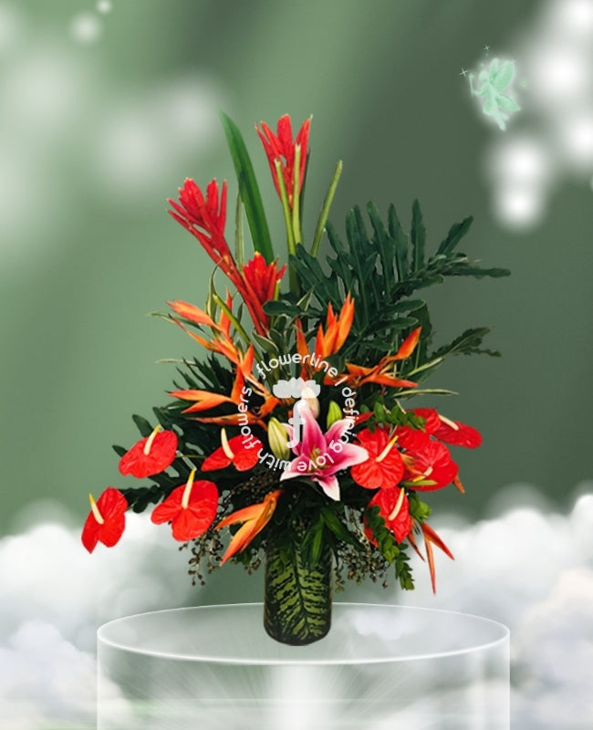 Our signature vase arrangement is composed of Lilies, Anthuriums and fillers.