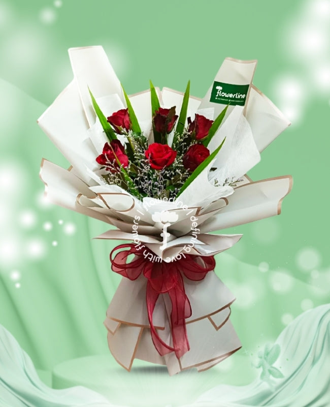 The bouquet comes with 6 stems of Philippine Roses with fillers. The flowers are tied with waterproof wrappers plus satin ribbon.