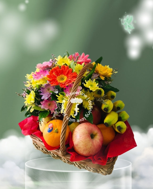The Nova basket blooms with fresh flowers, juicy fruits, and heartfelt surprise - add love to every occasion and delight your loved one today!