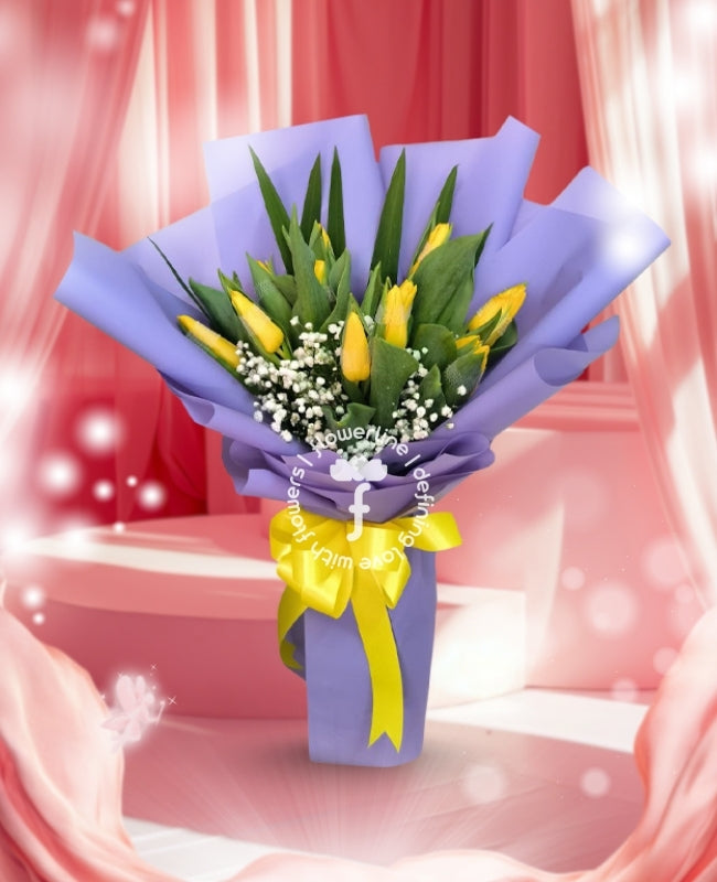 Experience the beauty of Taylor's lavender haze in a bouquet of yellow tulips! Whether for a special occasion or just because, this sophisticated and eye-catching design is sure to make someone smile and feel special. Show your appreciation and make a lasting impression with Taylor!