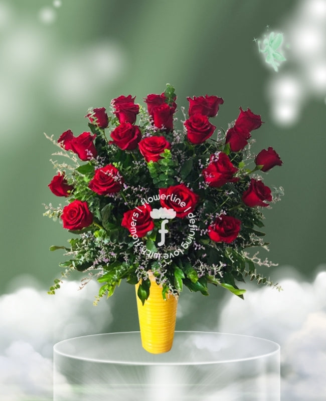 Our signature vase arrangement is composed of 2 dozen Bangkok Roses and fillers.