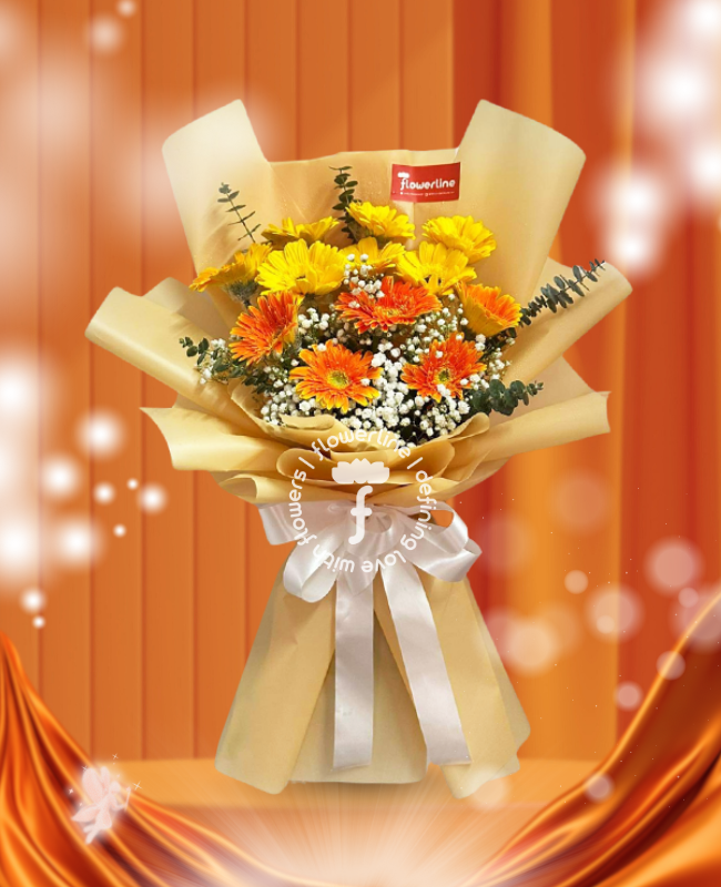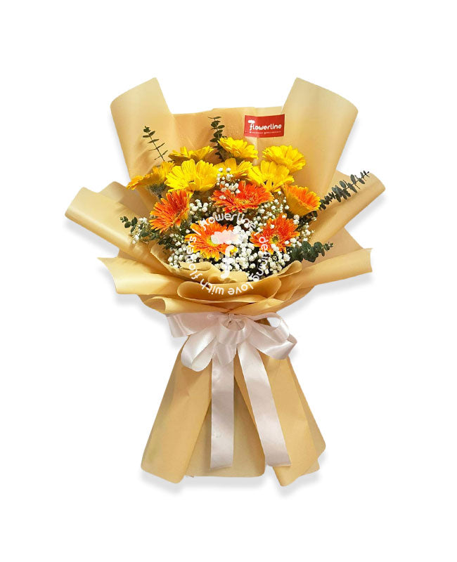 Incorporate some classic romance into any room with the Zephyr bouquet. This beautiful arrangement of yellow and orange gerberas is the perfect way to express your love without overdoing it. Its stunning appearance will surely make them swoon. Add a touch of timeless charm to any day with Zephyr.